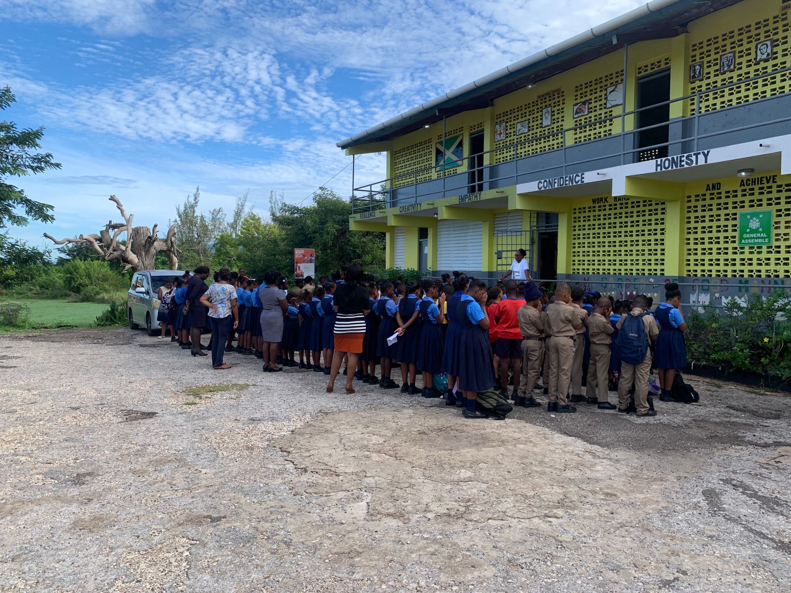 To improve outdoor facilities and accessibility for students. US $20,000 will pave the school yard and construct a multipurpose court for extracurricular activities; US $1,000 will add covering to the students’ bathrooms for safe access during rainy weather; and US $1,000 will provide play equipment and a covered play area for the Infant Department.
