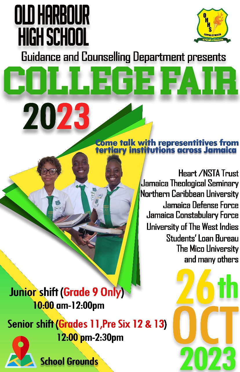 The Old Harbour High School is centrally located between Spanish Town and May Pen. It is situated about 550 meters south of Old Harbour Town and a couple miles north of the fishing village of Old Harbour Bay. It is one of two High Schools between Spanish Town May Pen. We have four (4) Guidance counsellors